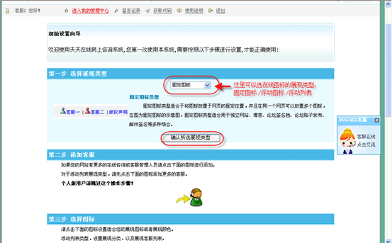 完成在線圖標(biāo)設(shè)置后,在“圖:初始設(shè)置向?qū)?2 ” 上點擊“獲取代碼”,彈出獲取代碼頁: