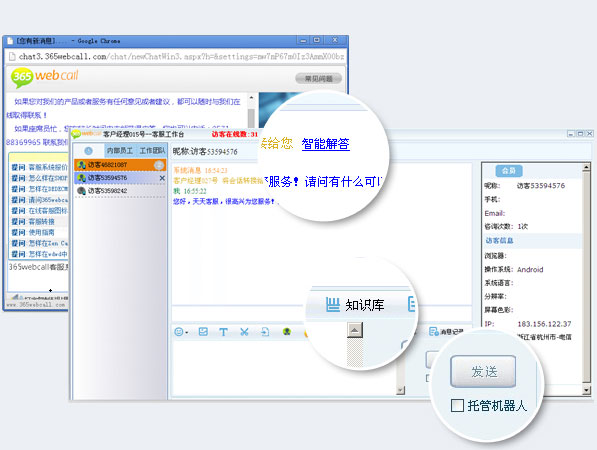 365webcall智能機(jī)器人是一款具有智能化、雙引擎(自然語言與關(guān)鍵字相結(jié)合)、全媒體、